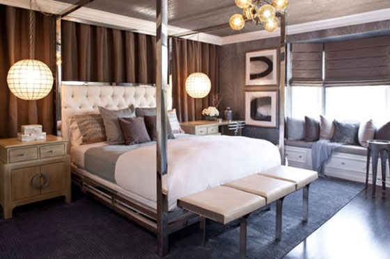 فعنصر الاضاءة في غرفة النوم يقع على عاتقه مدى سعادة الفرد وحالته المزاجية، لهذا اهتم مصممو الديكور في السنوات الاخيرة بوضع لمساتهم الفنية على توزيع الاضاءة وتصميمها داخل غرف النوم، وبرزت بقوة انماط الاضاءة التي تمنح الغرفة رحابة فندقية، فالعنصر الاساسي الذي يبعث على الارتياح في غرف الفنادق هو الاهتمام بتصيم الاضاءة الحميمية الدافئة.. ومن هنا قرر المصممون نقل هذا النمط الى المنازل للاستمتاع بالهدوء والاسترخاء الفندقي دون ان تغادر غرفة نومك المريحة.