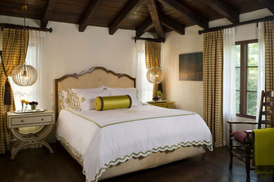 وحجات اضاءة كريستالية تضفي لمسة ساحرة على غرفة ريفية بأجواء اسبانية.