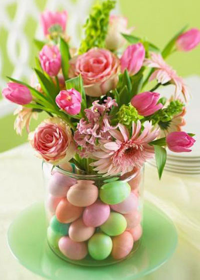 بيض عيد الفصح والربيع الملون يتناسق مع الازهار بطريقة جذابة