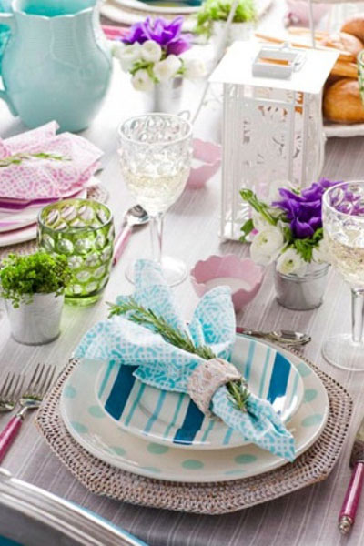 مائدتك في الربيع تتلون بلون الفرح وبلون الاشراق والطبيعة الخلابة التي تتفتح اسرارها معلنة عن اجمل فصول السنة. لهذا لا يجب ان يمر هذا الفصل دون اضفاء لمسات من الوانه الجذابة على مائدتك لتنعم عائلتك وضيوفك بروح الاشراق الربيعي والسعادة. انتقينا لك اليوم مجموعة افكار بسيطة تمنح مائدتك الاجواء الربيعية والاشراق والحيوية. شاهدي هذه الصور واستوحي منها افكار لمائدتك.