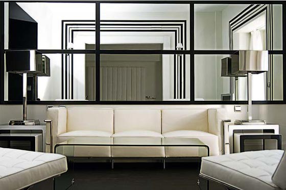 هذه الفكرة هي الأكثر تأثيراً في زيادة مساحة الغرفة، سواء كانت غرفة معيشة أو ممر أو حمام، فهي تنطلق بأبعاد الغرفة إلى أعماق متعددة، لكن يراعى حساب الإنعكاس المعدد إن تقابلت مرآتين لعدم خلق منظور متكرر يشوش النظر.