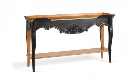 ونقدم لكم طاولة المدخل Lutetia المصنوعة من الخشب المطلي مع قاعدة معدنية أنيقة بالون الذهبي.