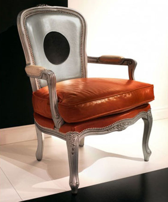 اخترنا لكم كرسي Floral المصنوع من خشب الكرز المطلي ومنجد بالجلد الفاخر بميج من البرتقالي والرمادي من مجموعة .