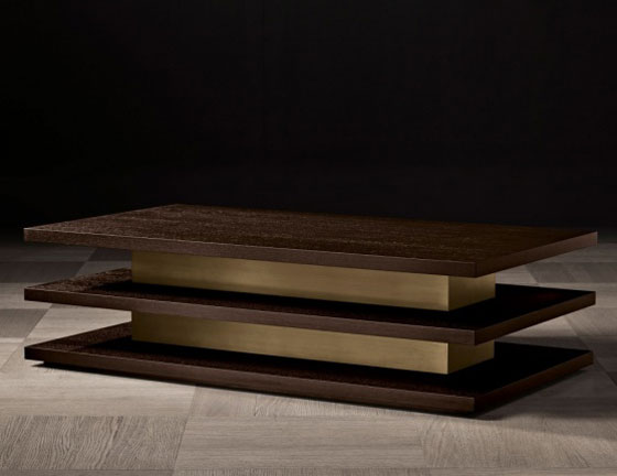 وهناك أيضاً طاولة قهوة المصنوعة من خشب البلوط بلمسات رائعة وطبقات خشبية برونزية .