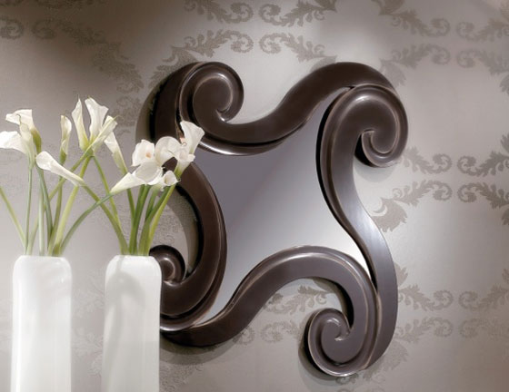 ونقدم لكم أيضاً مرآة المصنوعة بإطار من خشب الكرز المطلي بالأسود والمستوحاة من تصميمات القرن السابع عشر والثامن عشر من مجموعة .