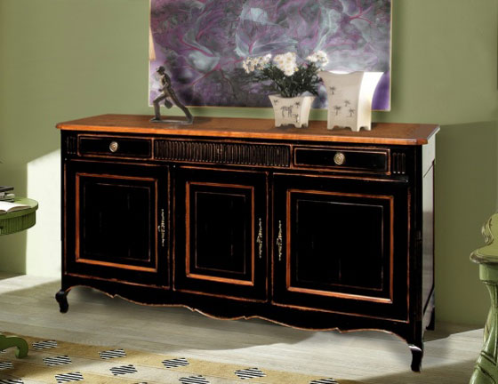 واخترنا أيضاً بوفيه المصنوع من خشب الكرز باللون الأسود مصمم بعدد من الأدراج لتخزين أدوات المائدة.
