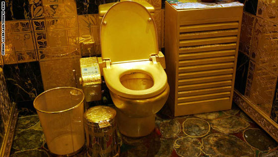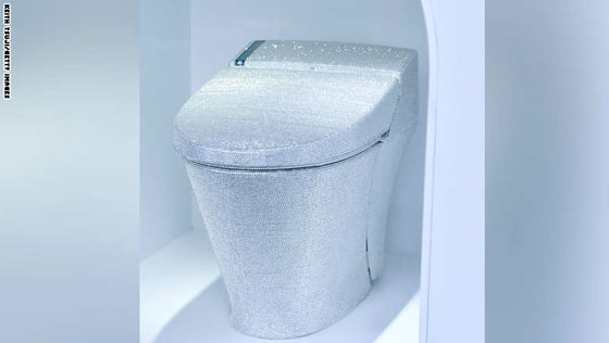 تم إعادة تصور المراحيض في عدد من الطرق الفاحشة على مر السنوات. وتظهر هذه الصورة، التي اتخذت في منطقة هونغ كونغ في الصين، حماماً مطلي بالذهب الخالص ومرصع بالجواهر، بسعر يبلغ حوالي 4.8 مليون دولار.
