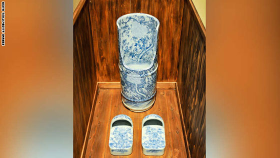 مرحاض قديم في العاصمة اليابانية طوكيو يظهر المراحل المتلاحقة لكيفية تطور المراحيض.