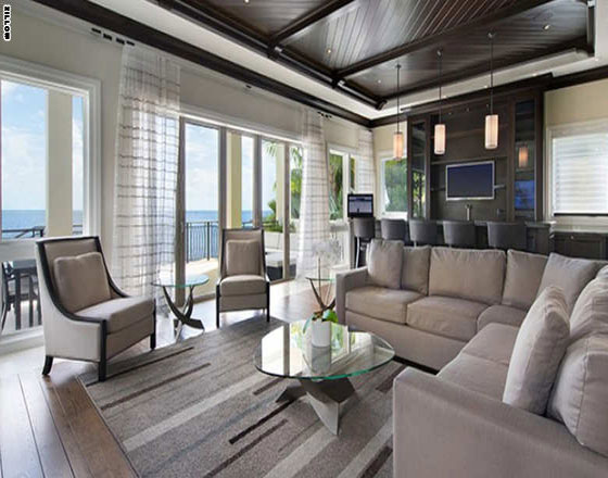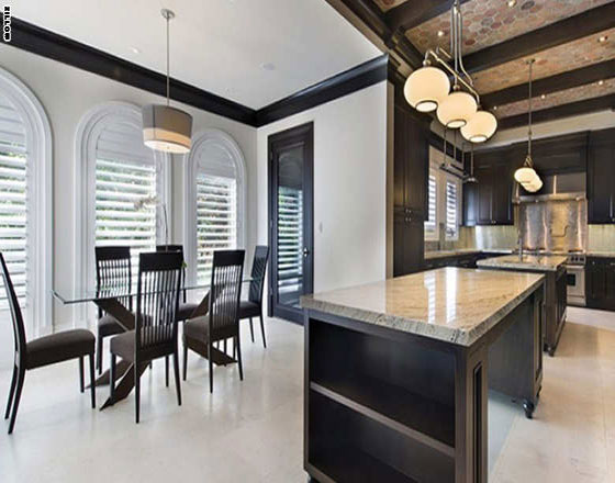 ويتكون المنزل من ست غرف نوم، وثمانية حمامات، وصالة مسرح وسينما. وتضم الملكية أيضا دار للضيافة، وحوض للسباحة، وموقف لليخوت. وفيما يلي، بعض الصور التي تلتقط التفاصيل الجمالية في المنزل الفاخر: