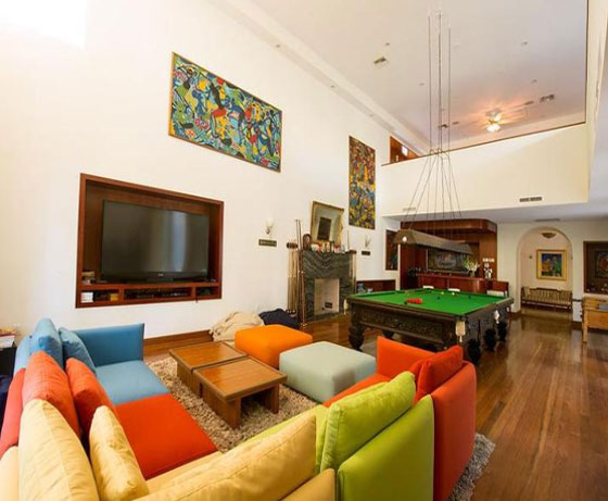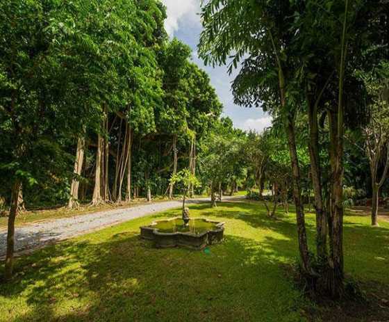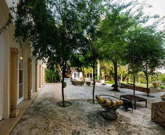 ويتميز المنزل بتضمنه باحة ضخمة من حجر المرجان، ومنطقة جلوس مظللة بأشجار النخيل العالية والتي تحيط ببركة سباحة ضخمة. وتعتبر هذه الباحة بمثابة مساحة ترفيهية تكفي لاستقبال ما يزيد عن مئات الضيوف للاستمتاع بالحفلات التي تقام في الهواء الطلق.