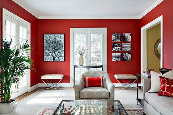 سيطر اللون الأحمر لقرون عديدة كرمز للقوة والتميز والثراء المترف في القصور الفخمة فهو من الألوان القوية النارية التي تحمل تأثيراً عميقاً في النفس، يعشقه الكثير من مصممي الديكور لأنه براق وصريح ولكن نظراً لجرأته الواضحة يتردد الكثيرون في استخدامه في التصميم الداخلي كما يصعب أن يكون هو اللون المسيطر على الديكور بشكل كامل.. ولكن توجد طرق بسيطة لإدخاله على الديكور بشكل جذاب وفاخر دون أن يزعج العين، فهو يعد من الاضافات الرائعة التي تضفي ثراءاً مميزاً ومترفاً على التصميم اذا تم توظيفه بشكل جيد.