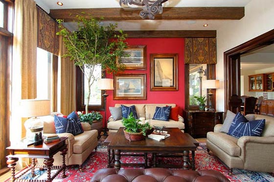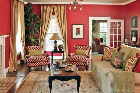ويتماشى هذا اللون بسهولة مع العديد من الألوان بشرط تنسيق الدرجات جيداً، ويمكن ادخاله بحذر وأناقة في اكسسوارات الديكور أو السجاد أو الستائر أو اللوحات، أو طلاء جدار واحد بهذا اللون، ويجب ان يتم ذلك بشكل مدروس ودون مبالغة. ونقدم لك اليوم صوراً متنوعة لديكورات أنيقة يمنحها الأحمر دفئاً وثراءاً جذاباً، وهي كما ستلاحظين لا تعتمد على الأحمر الدموي الحاد وانما الأحمر المخلوط بألوان أخرى مما ينتج درجات جذابة تتكامل مع الأثاث بشكل مدهش سواءاً كان الطراز كلاسيكي أو عصري.. لهذا ننصحك ألا تقلقي من استخدامه في تغيير ديكور المنزل مع اتباع نصائح الديكور وتطبيق الأفكار الواردة في صور الكتالوجات لضمان نتيجة لونية مرضية للعين والروح. شاهدي هذه الصور الأنيقة واستوحي منها أفكاراً لديكور منزلك من وحي الأحمر الدافئ المثير..