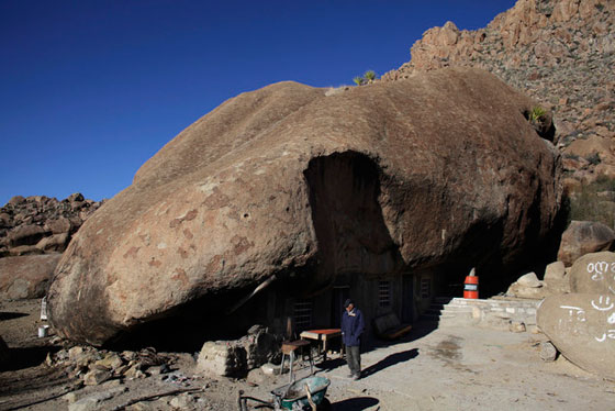 بونيتو هرناندز يقف أمام منزله في المكيسك ويتكون سقفه من صخرة ضخمة