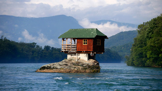 منزل مبني على صخرة في نهر درينا قرب مدينة باجينا باستا الصربية