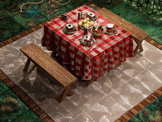 ليزا لو فنانة ولدت في نيويورك ومتخصصة في العمل الزجاجي وتركيب حبات الزجاج. وتظهر الصور التالية مشاريع لها بعنوان "المطبخ" و "الفناء الخلفي". ليزا تعمل بجهد ولوحدها لربط حبات الزجاج مع بعضها البعض لتتكون لديها لوحات فنية مذهلة إما باستخدام أصابعها أو بالملاقط. معرض "المطبخ" هذا استغرق من ليزا 5 سنوات لإكماله. أما "الفناء الخلفي" فقد استغرق 3 سنوات. وقد تمت تغطية كل سطح في "مطبخ" و"الفناء الخلفي" بحبات الزجاج الملونة. والصورة رقم 8 تعطيك فكرة عن حجم هذين المشروعين. تم عرض هذه المعارض وطنيا ودوليا.
