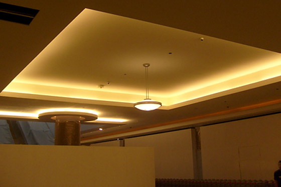 4- استعمال الإضاءة غير المباشرة: الإضاءة هي الوسيلة الفعّالة التي يُمكن أن توسّع المكان أو تضيّقه بالتلاعب في كمّها ونوعها وطريقة استخدامها. عموماً، إنّ الضوء المباشر والحادّ يُعطي شعوراً بضيق المكان، فيما تلعب الإضاءة المخفيّة وغير المباشرة دوراً في توسيع المكان في عين الناظر، فالسقف يبدو أكثر ارتفاعاً بهذه الإضاءة المخفيّة، التي كانت انتشرت كثيراً في الفترة الأخيرة، كما يُمكن توزيعها أسفل خزائن المطبخ، وتحت المناضد، وداخل الرفوف والخزانات الزجاجية، التي تضمّ "السيراميك" و"الأكسسوارت" الصغيرة. يمكن أيضا استخدام الإضاءة العمودية التي توهم العين بسعة المكان.