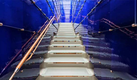 يدوياً، وهذا الدرج أتى بالتعاون بينه وبين فنان الزجاج الكندي ميمي غيلمان