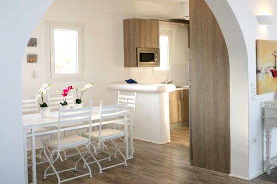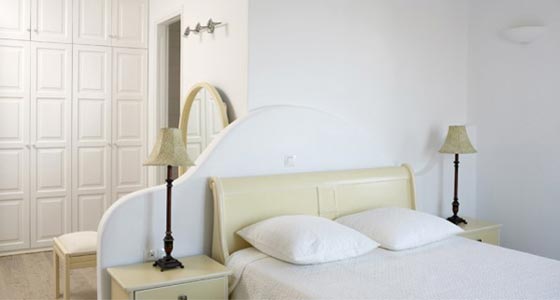 ونرى هنا تصميم متوسطيا أنيقا للمطبخ ونلاحظ الشكل المتوسطي المميز لفتحة دخول المطبخ عبارة عن أرك - أرش Arch معماري يزيد من طاقة الإشراق في المكان , ويضيف لمسة جمالية للتصميم المعماري للفيلا من الداخل. إحدى غرف النوم بشكل كلاسيكي أنيق يحمل من الرفاهية والراحة ما يجعل غرفة النوم تشع إشراقاً وحميمية .