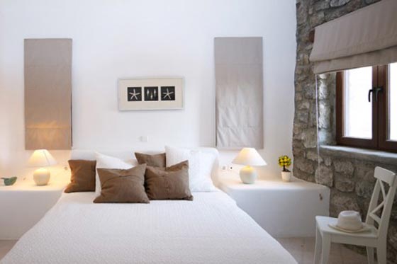 أما غرفة النوم الأخرى فهي تعتبر النموذج المجسد للمنازل الساحلية المتوسطية الحديثة حيث المزج بين الحجر الطبيعي والأخشاب والحوائط الخرسانية مع مشهد بانورامي أيضاً على البحر. وفي التراس الخارجي المفتوح على البحر مباشرة نجد الجلسة الخارجية على أريكة وثيرة ومائدة معدة لوجبات شهية في الهواء الطلق، وكل هذا تحت سقف أنيق من الأخشاب التي يتخللها نور الشمس. وحوض السباحة الخارجي مُصَمَم على شكل بحيرة صغيرة لزيادة الإندماج مع طبيعة المكان المحيط بالفيلا الأنيقة، ليظهر جمال المكان أكثر وأكثر مع الإضاءة الليلية الساحرة للمكان، فقد تم غرس كل سمات الرفاهية والجمال في كل ركن من تلك الفيلا.
