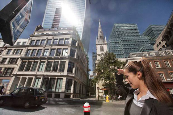 حصلت ناطحة سحاب في لندن، تصدرت عناوين الأخبار، حين أدت أشعة الشمس المنعكسة على سطحها إلى انصهار أجزاء من سيارة جاغوار كانت تقف في الشارع على جائزة كأس "كاربنكل"، التي تقدم سنوياً لأسوأ تصميم معماري. والمبنى المكون من 37 طابقاً في حي المال بالعاصمة لندن يحمل اسم 20 "فينتشيرش ستريت"، وكان يطلق عليه "ووكي توكي" أي "جهاز اللاسلكي" بسبب شكله المنحني، لكنه بعد حادث صهر السيارة في 2013 حمل لقباً جديداً "ووكي سكورتشي" أو "الجهاز الحارق".