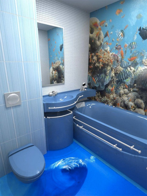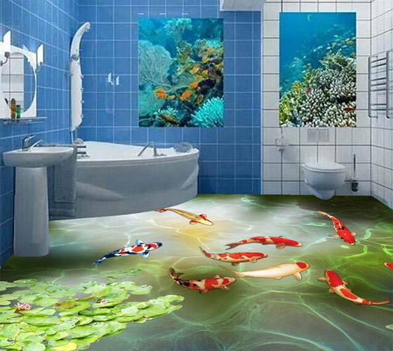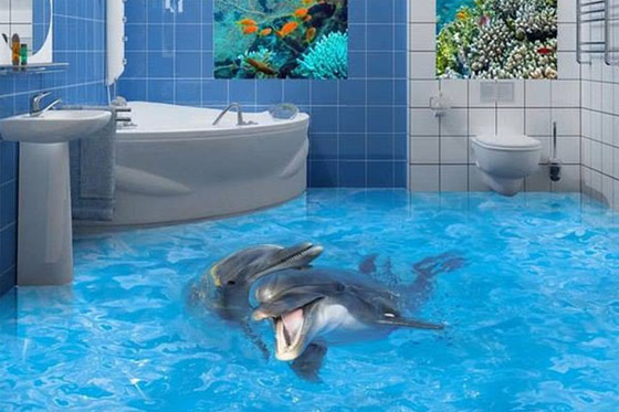 هناك طرق وأساليب عديدة لتصميم أرضية الحمّام، وقد اخترنا لك مجموعةً من الصور والأفكار المؤلّفة من رسومات ثلاثية الأبعاد والتي ستدهش كل من ينظر إليها. بإمكانك إحضار المحيط إلى الحمّام ليكون تحت قدميك لتشعري كأن الأمواج تتراكض تحت قدميك من خلال اختيار تصميم يمنحك انطباعاً كأنك تنظرين إلى أعماق المياه. تأخذك هذه التصاميم إلى عالم واسع من الخيال والأحلام، ويخيل إليك بأنك تصغين إلى صوت الأمواج المريح وتشعرين بنسيم البحر المنعش. تتضمّن بعض الرسومات أنواعاً وفصائل متنوّعة من الأسماك مثل الدلافين التي تقفز وأسماكاً أخرى مفعمة بالألوان الزاهية، بالإضافة إلى النباتات البحرية والمرجان الملوّن وغيرها من المخلوقات الرائعة.