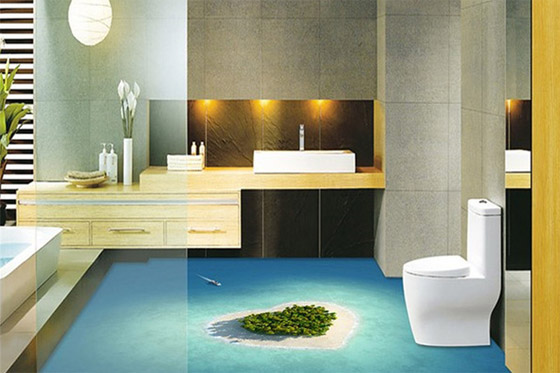 تغيّر هذه الرسومات جو الحمّام بأكمله، كما تمنحك جواً من الهدوء والسلام والطمأنينة في أكثر مكان تحصلين فيه على الراحة والاسترخاء. تخيلي أنك مستلقية في حوض الاستحمام في المياه الساخنة وحولك الأرضية المصمّمة برسومات ثلاثية الأبعاد؛ سيخالجك شعور كأنك مسترخية على سطح المياه في وسط المحيط ولا شيء حولك إلا الأمواج الهادئة وصوت الطبيعة المريح.