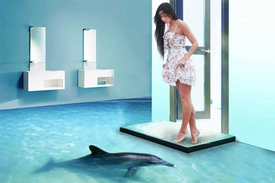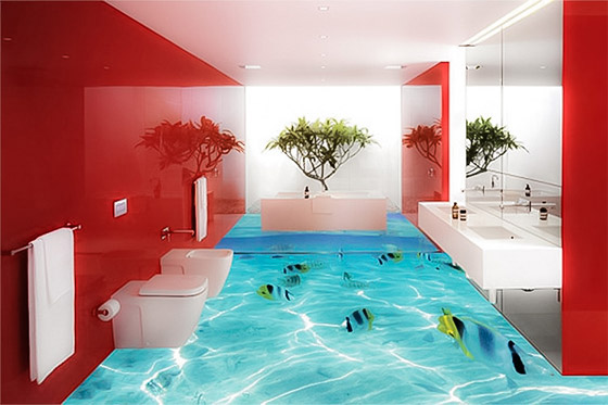 إن الأرضية هي من الأجزاء الأهم في ديكور المنزل، وتستطيعين من خلالها تغيير شكل الديكور والإحساس والإنطباع الذي يمنحه على الرغم من أنه الجزء الذي يتم منحه أقل قدر من الأهمية في الديكور. عندما يتعلّق الأمر بالحمّام، تشعرين أحياناً بالملل أو سئمت من البلاط العادي والتصاميم الباهتة التي تكون عادةً بلون واحد أو لونين، باستطاعتك أن تغيّري ديكور الحمام بشكل دراماتيكي من خلال استخدام الرسومات والتصاميم ثلاثية الأبعاد على الأرضيات، وسيتغيّر الديكور من عادي إلى مدهش.