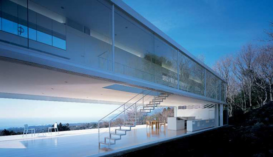 عشق بان هذا الموقع، وقرر بهذه المساحة الخالية والتي يندر وجودها باليابان دون معيقات بصرية، أن يقوم بتأطير هذا المنظر من المحيط وحتى أعلى التلة، بنافذة ضخمة، لتبدو وكأنها لقطة من صورة فوتوغرافية عملاقة.