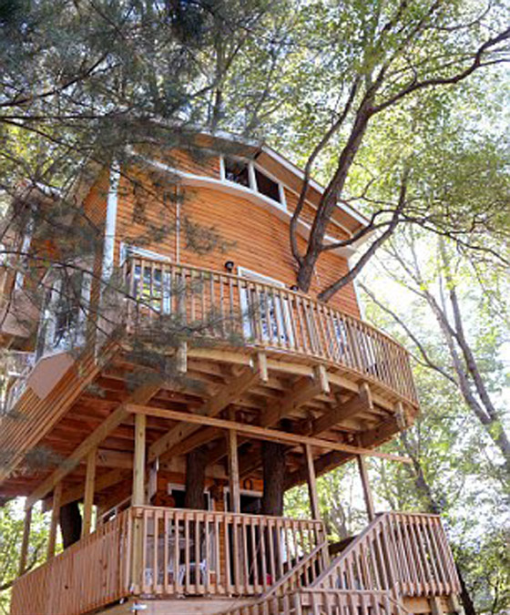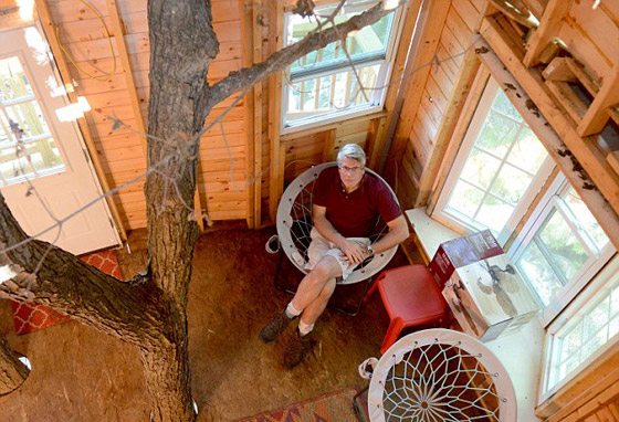 بعد أن أسره جمال الطبيعة، قام جد أميركي يدعى جاي هيويت ببناء منزل الأحلام لأحفاده الاثنين على أربع أشجار من القيقب، ليجد نفسه محاطاً بالخضرة أينما وجه نظره مستمتعاً بنقاء الجو وروعة المنظر. يبلغ طول هذا المنزل العائم فوق الشجر 40 قدماً ويتكون من ثلاثة طوابق ويقع وراء منزل هيويت في مدينة أتلبورو بالولايات المتحدة الأميركية. استغرق هيويت عامين لبناء هذا المنزل مستخدماً مواد حصل عليها من خلال عمله السابق في مجال البناء بالإضافة إلى مواد أخرى اشتراها من متجر لمنتجات وخدمات البناء.