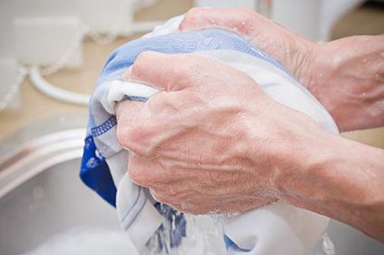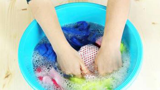 التفكير في غسيل الملابس يدويا هو كأنك تعطيه حماما، ومن الطبيعي ألا تسترخي في حوض الإستحمام دون أن يكون ممتلئا بالمياه، لذلك لا تفعل ذلك مع ملابسك دون أن تضع المسحوق والمياه معا في الحوض، ففتح الصنبور أعلى المياه يمكن أن يدمر النسيج نتيجة لقوة التدفق، ويجب التأكد من ذوبان المسحوق تماما في المياه قبل وضع الملابس ليسهل شطفه بالمياه بعد التنظيف وكذلك اختيار نوع المياه المناسب للأقمشة من فاتر غلى بارد.