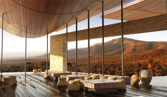 ستان فيلد، مركز كارو البري في جنوب أفريقيا: وقد صمم فيلد مركز البرية هذا أيضا، الذي يقع في منطقة شبه صحراوية في جنوب أفريقيا، بمساحة أكثر من 400,000 كيلومتر مربع. ويحتوي المركز أكثر من 6000 نوع من النباتات. وصُمم سقف المركز المميز لجمع مياه الأمطار لتبريد المبنى، كما تولد الطاقة من خلال تقنية "الطاقة الشمسية"، كما يتم إعادة استخدام مياه الصرف غير الصحية.
