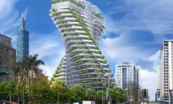 برج تاو شو يين يوان في تايبيه، تايوان: هذا البرج اللولبي، الذي صممه فنسنت كاليبو، هو أحد أكثر مباني العالم صداقة للبيئة. يحتوي على العديد من الحدائق الخاصة والغابات للحفاظ على من يقيم بداخله، كما أنه يعيد تدوير جميع النفايات العضوية والمياه المستخدمة، ويعتمد على الطاقة الشمسية للتدفئة. سيفتتح برج تاو شو يين يوان في العام 2016.