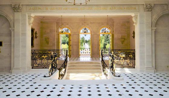 ويعكس المنزل فخامة قصر فرساي ويتضمن المنزل جناحين رئيسيين وغرفة استقبال ضخمة بسقف تزينه الرسوم اليدوية، ومطبخين صمما بشكل فني وطابقاً مخصصاً للمناسبات، بالإضافة إلى قبو للنبيذ، ودار سينما داخلية، بالإضافة إلى حوض أسماك تحت الأرض هو الوحيد في أوروبا.