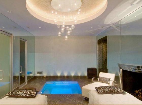 -في منزل الثنائي الواقع في مدينة "هامبتون" الأمريكيّة، تبرز غرفة الـ"سبا" المجهزة بوسائل الراحة كافة. هناك، تلعب الإضاءة دور البطولة. وفي العنوان عينه، ثمة صالة لممارسة لعبة "البولينغ"، مع حضور اللون البرتقالي على الأريكة المثبتة على الجدار الجانبي.