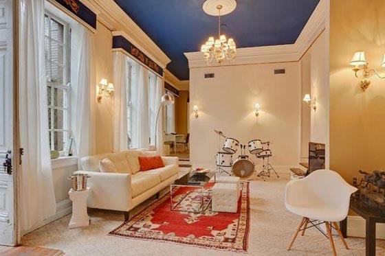 - في منزل الثنائي الواقع في مدينة "نيو أورليانز"، تبدو غرفة الموسيقى رائقة في "ديكوراتها"، وتشهد على حضور آلات موسيقية مختلفة. هناك، يبرز الأزرق على السقف المشغول بإتقان، ويغلف اللون الأصفر "الباستيل" الجدران المزدانة بالمصابيح الجانبية، فيما تتلوّن قطعة السجاد بالأحمر الذي يضفي لمسة فخمة في الأرجاء. كانت بيونسيه اختارت أثاثاً أبيض اللون، للحفاظ على وحدة التصميم في المساحة.