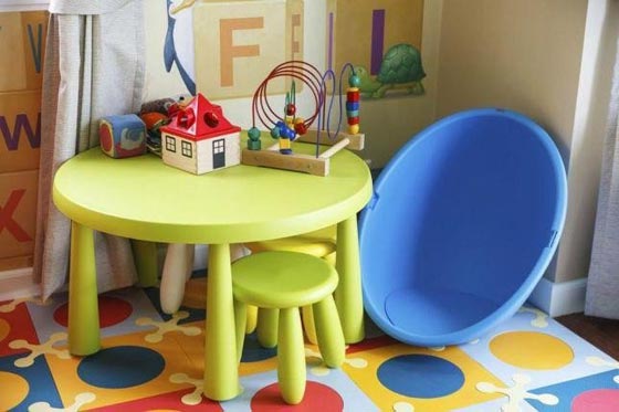 3. ضعي سجّادة صغيرة في المكان المخصّص للعب، فالطفل يفضّل الجلوس على الأرض بدلاً من الكرسي.