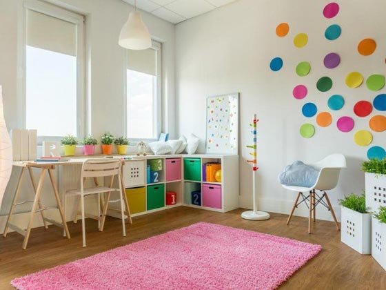 1. احرصي على اقتناء صناديق لتخزين الألعاب، وقومي بتزيينها بورق ملوّن، وضعيها تحت السرير لكسب المساحة. ولا تنسي سلّة المهملات.