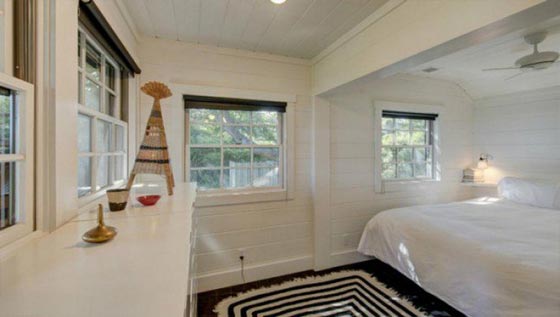 ولم تغب البساطة عن غرفة النوم الرئيسة المكلّلة بالأبيض النقي، وتقتصر مكوناتها على سرير مزدوج يتموضع قبالة النوافذ الوافرة لتنعم المالكة بإطلالة خارجية وهي مستلقية في فراشها. بدورها، تتلألأ خزائن المطبخ الخشب بطلائها الأبيض، وتتناغم مع خامة الأدوات الكهربائية المعدّة من "الستاينلس ستيل".