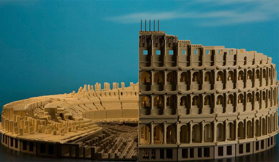 من قطع ألعاب "ليغو." واستغرق بناء الكولوسيوم 120 ساعة لتصميمه، و75 ساعة لبنائه.