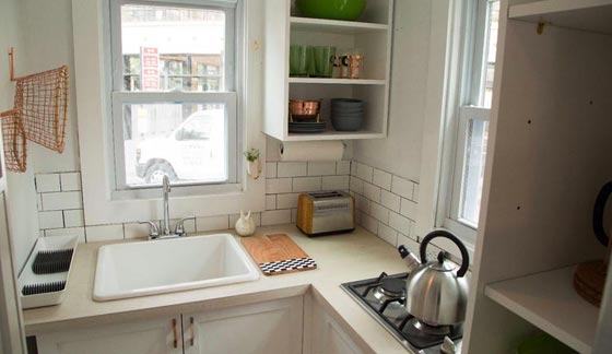 ويتضمن المنزل الصغير مطبخاً صغيراً، وسريراً، وحماماً كاملاً، دون مياه جارية بعد. كما أنه مزود بشرفة صغيرة مزينة بالنباتات، ما يجعله يبدو أكثر اتساعاً وأكبر حجماً.