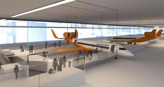 وداعا لساعات الإنتظار الطويلة في المطار، إذ قدم طلاب ومصممون ألمان على هامش معرض برلين للطيران والفضاء تصاميم مثيرة لمطارات وطائرات المستقبل التي يمكن ركوبها من قلب المدينة خلال 10 دقائق فقط.
