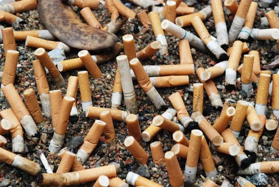 أعقاب سجائر على شكل لافتة لترك التدخين