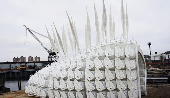 ويتكون المبنى الواقع في بروكلين نافي يارد في مدينة نيويورك الأمريكية، من وحدات مفصلة من إطارات رقائق الخشب، و264 حجرة بلاستيكية، أو ما يسمى بمنازل الحشرات، موضوعة داخل الإطار ومكدسة فوق بعضها. ويتسع المبنى لحوالي 22 ألف حشرة.