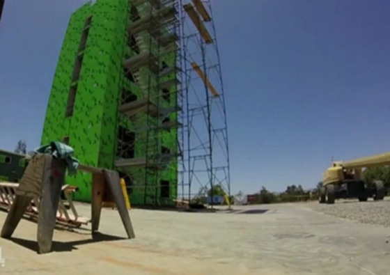يقول جويل كونتي/ أستاذ هندسة: " هذا يوم مثير لأنه كما ترون حجم العينة مهم جدا". ويتحدث دكتور جويل كونتي عن هذا المبنى الأخضر قرب منطقة ميرامار بكاليفورنيا، حيث بني من أجل اختبار مدى تحمله لزلزال قوي. "إنه أكبر مجسم خارجي لاختبار الهزات في العالم ... وسنخضع هذا المبنى المكون من ستة طوابق لزلزال حقيقي".