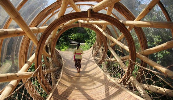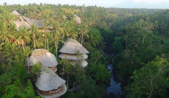 في جزيرة بالي ، يوجد مجمع يتكون من 18 فيلا مصنوعة كلياً من خشب البامبو