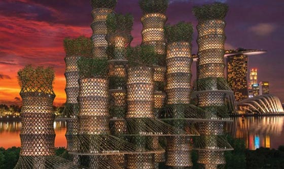 اقترحت شركة CRG Architects تصميماً لناطحة سحاب مصنوعة من خشب البامبو بالكامل في مهرجان العمارة العالمي في العام 2015. وأعلنت الأمم المتحدة أن خشب البامبو هو من مواد البناء الصديقة للبيئة، والتي يساعد استخدامها في محاربة التغيّر المناخي