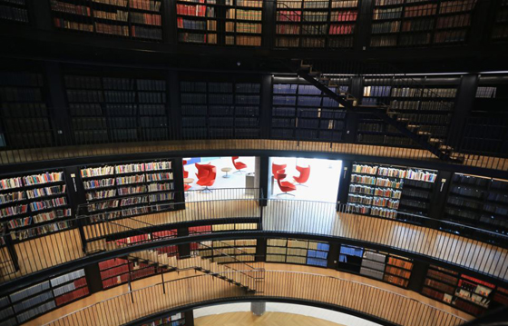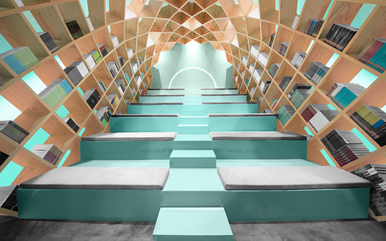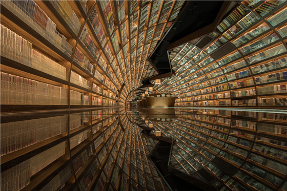 3- مكتبة يانغتشو Zhangshuge: تقع المكتبة في تشن يوان بالصين، وصمم المهندسون المكتبة بحيث يبدو المشي من خلالها وكأننا نمشي عبر نهر من الكتب، حيث يوجد رفوف منحنية لتشكل انعكاسا على الأرض يعطي تأثيرا مشابها للمشي ضمن نفق مملوء بالكتب.