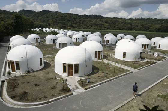 8- صورة لنحو 70 منزلا على شكل قباب، بنيت من قِبل منظمة غير ربحية في الولايات المتحدة الأمريكية، للقرويين الذين فقدوا منازلهم في الزلزال الذي وقع في قرية سومبيراجو، بالقرب من مدينة يوجياكارتا القديمة، اندونيسيا