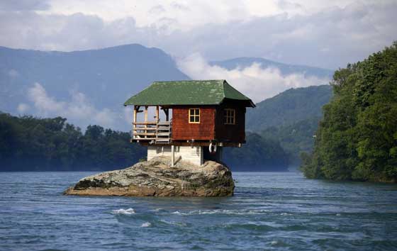 9- منزل بني فوق صخرة في نهر درينا بالقرب من بلدة بانيا باستا الصربية