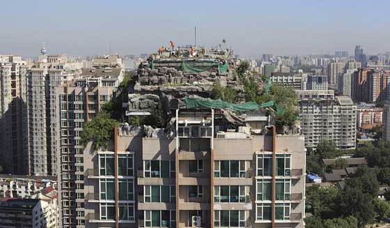 10- بني هذا المجمع السكني من 26 طابقا على سطح فيلا تبدو كأنها وسط الأدغال والصخور في بكين